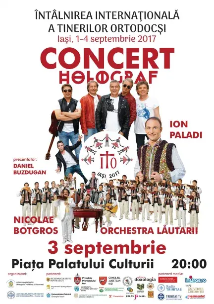Duminică, 3 septembrie 2017, începând cu ora 20:00 va avea loc Concertul excepţional Holograf, Orchestra Lăutarii şi maestrul Nicolae Botgros şi Ion Paladi în fața Palatului Culturii.