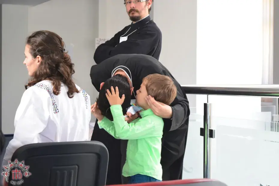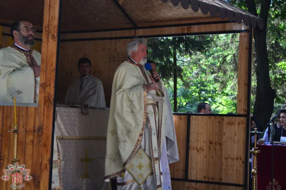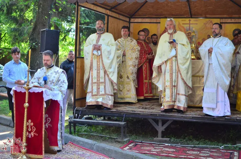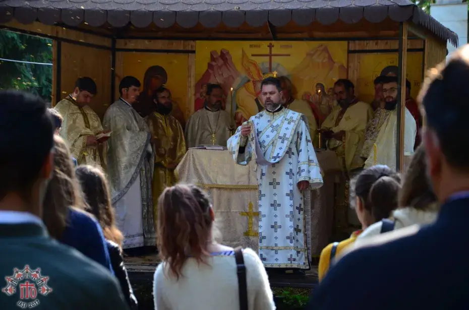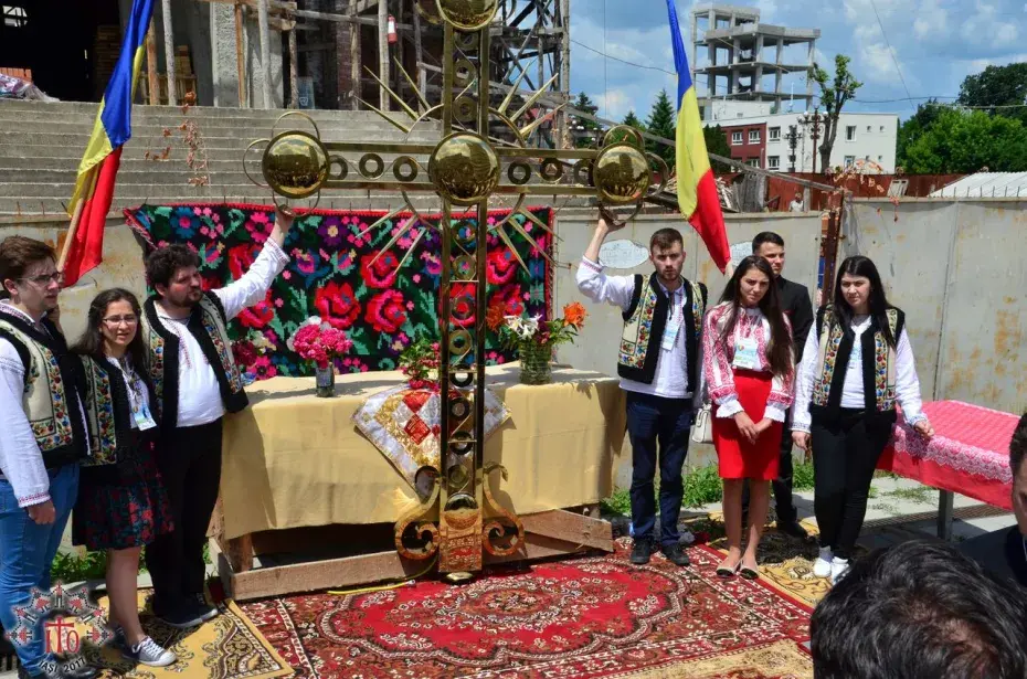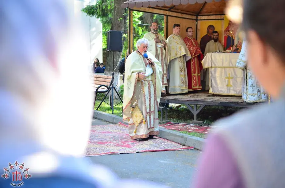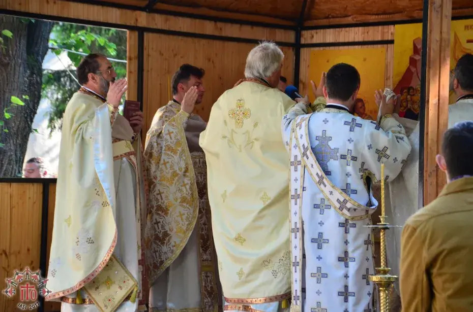Între sesiuni, s-a săvârșit slujba de sfințire a uneia dintre crucile care a fost montate pe turlele catedralei Pogorârea Sfântului Duh aflate în construcție, din Pașcani, săvârșită de părintele protopop alături de părinții organizatori și moderatori.