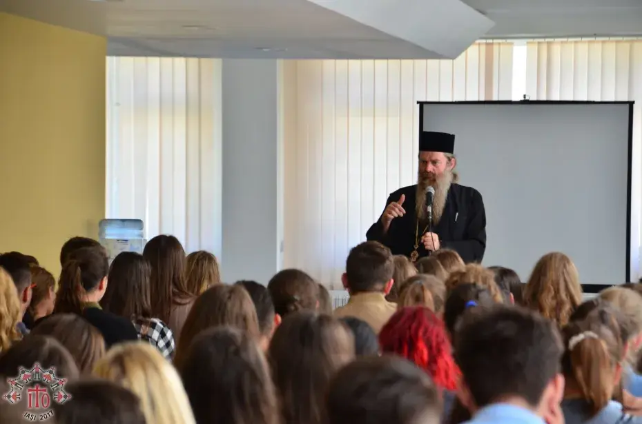 În prima parte a conferinței părintele arhimandrit a vorbit despre tânărul din ziua de astăzi care este îngrădit de tehnologie, de frica de a vorbi liber și de vicii. „Libertatea înseamnă normalitate. Tinerii au nevoie de două lucruri: să li se spună doar adevărul și să fie iubiți. Tânărul poate fi liber doar dacă îl iubește pe Dumnezeu. Dacă vrei să fii cu adevărat liber, înțelept și isteț este bine să te alături Celui mai Puternic, lui Dumnezeu. Mă plictisesc, sunt bolnav... sunt cuvintele unui om (tânăr) despărțit de adevărata Libertate.” Totodată, așa cum ne-a obișnuit, părintele a încercat să ne dea unele sfaturi, care să ne ajute să ne valorificăm mai bine timpul, urmate de câteva povestioare. În cea de a doua parte a conferinței tinerii au continuat dialogul cu părintele Nicodim adresându-i câteva întrebări legate de tema propusă.