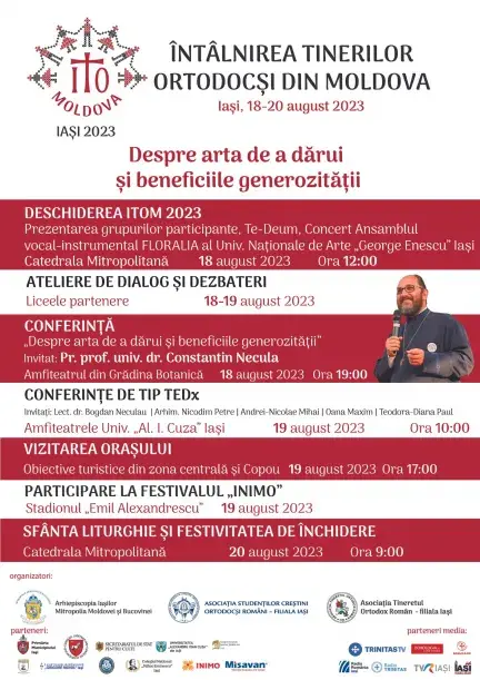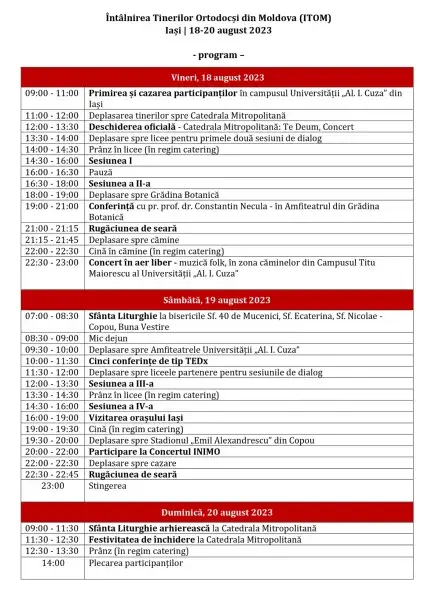 Vă invităm la „Întâlnirea Tinerilor Ortodocși din Moldova” (ITOM - Iași), organizată de către Departamentul Misiune pentru Tineret al Arhiepiscopiei Iașilor, în perioada 18-20 august 2023.
